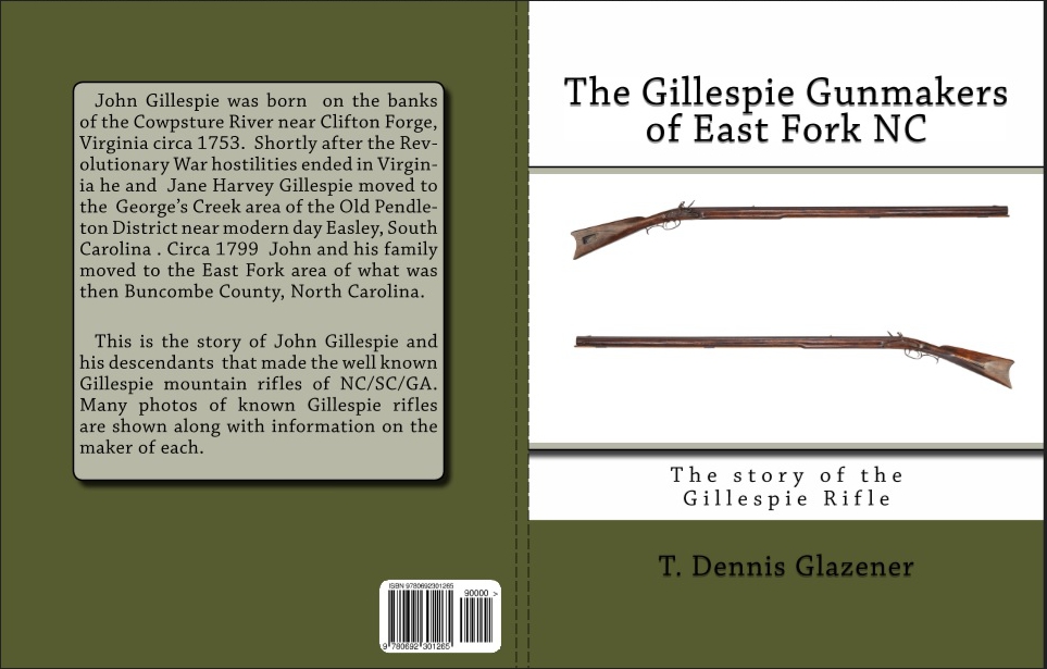 While studying the Glazener line I found more and more about my Great Grandmother's Gillespie line. Her father was William Gillespie the oldest son of John Gillespie. John was the first of the well known NC Gillespie gun makers. I was so enthralled with this family of gun makers that I wrote a book about them. If you would be interested in knowing more about the book, "The Gillespie Gun Makers of East Fork NC" see my catalog page for ordering information. If you are related to the Gillespie gun makers I would love to discuss them with you. I may be reached via email at tdg23113 (@) verizon.net or via telephone at (804) 794-4863, I love to share my research with other family members.